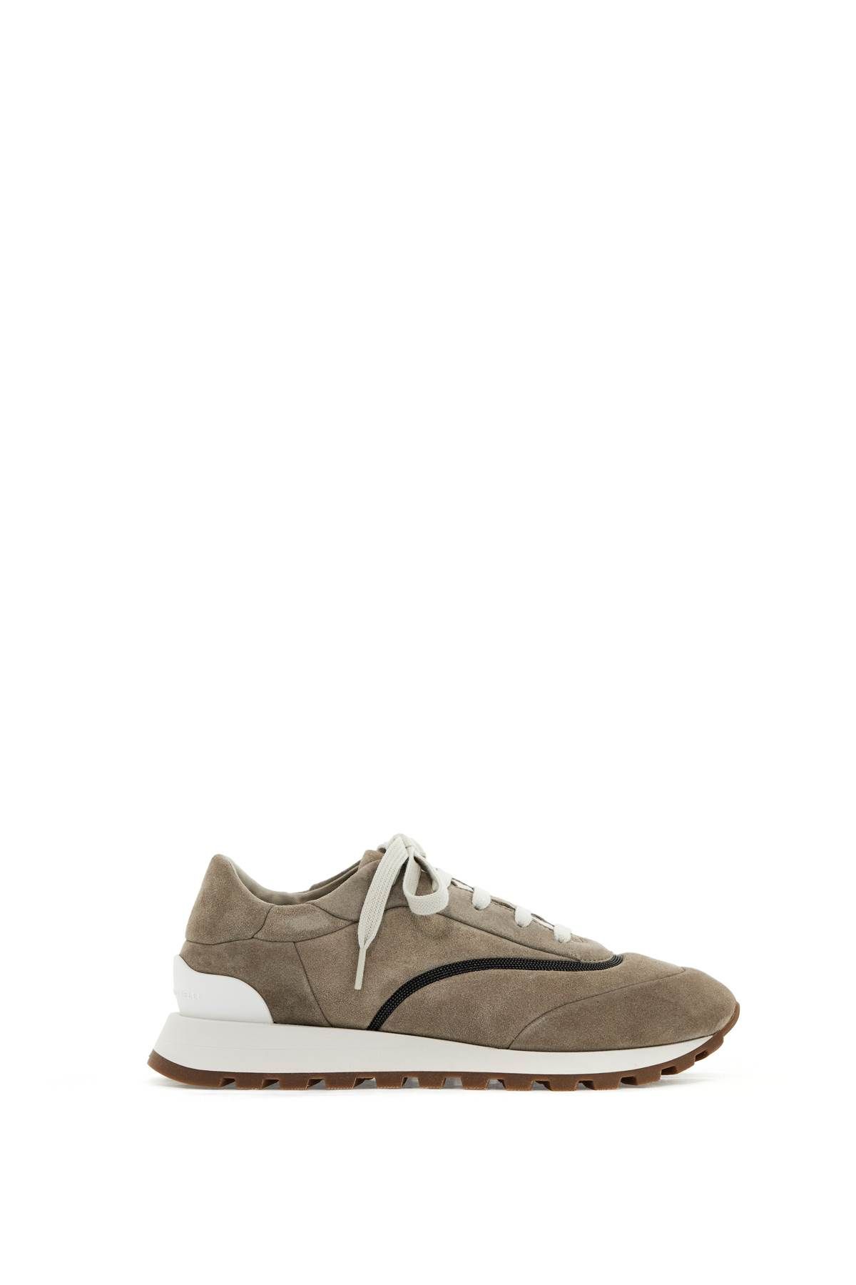These Brunello Cucinelli sneakers are made of quilted suede leather and embellished with nickel-free monile embroidery. The lining is made of fabric, with a removable insole and the brand's lettering logo imprinted on the rubber insert at the back and on the lightweight rubber sole with TPU tread.