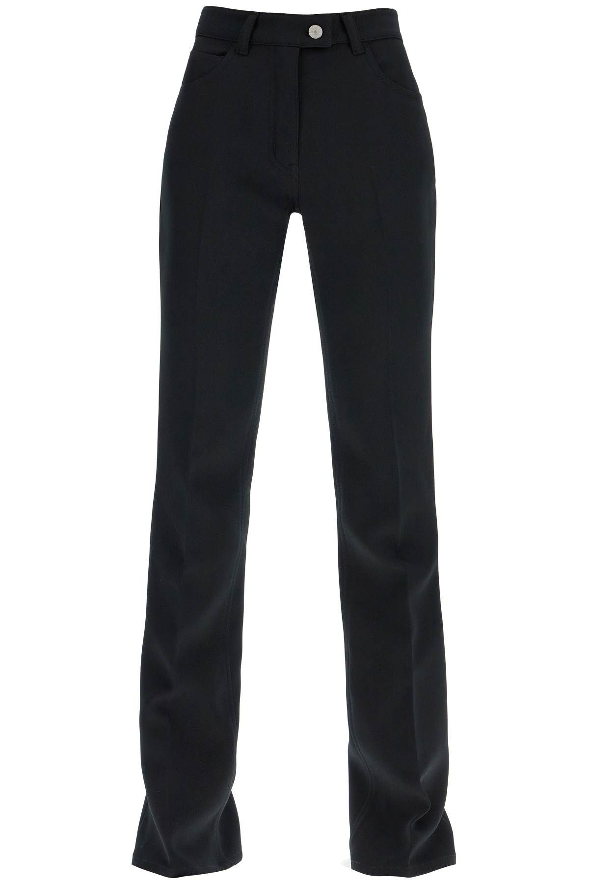 The classic five-pocket construction and bootcut with pressed crease characterize these Courrèges twill pants for a versatile look. The garment is completed by the medium waist with belt loops and front flap. The model is 177 cm tall and wears size FR 36.