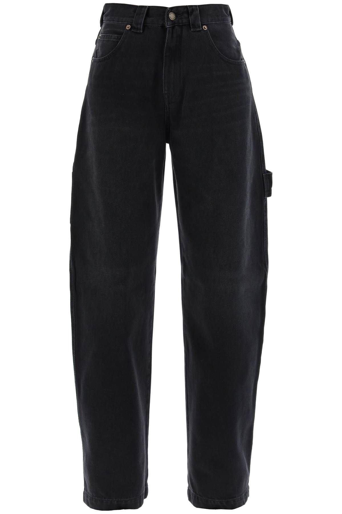 Darkpark jeans crafted in overdyed cotton denim, with cargo design characterized by workwear pockets and hammer loop on the legs. Five-pocket model featuring front zipper-fly and button closure, belt loops and leather jacron on the back of the waist. Baggy fit with curved leg. The model is 177 cm tall and wears size 26.