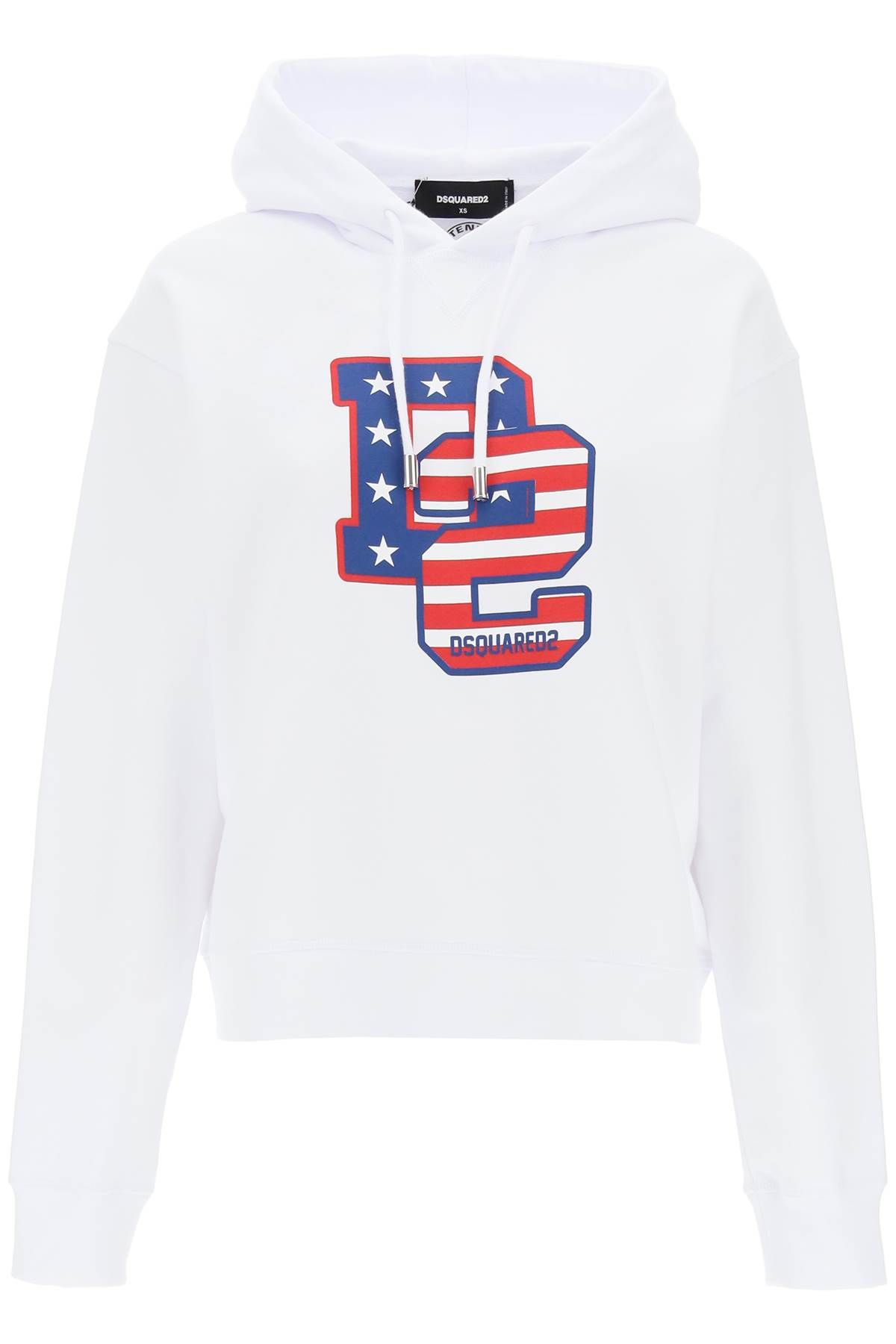 Dsquared2 sweatshirt crafted in cotton french terry with graphic D2 print. It features adjustable hood with drawstring, ribbed hem and cuffs and it is finished with overlock stitching. Cool Fit style with straight relaxed cut. The model is 177 cm tall and wears size XS.