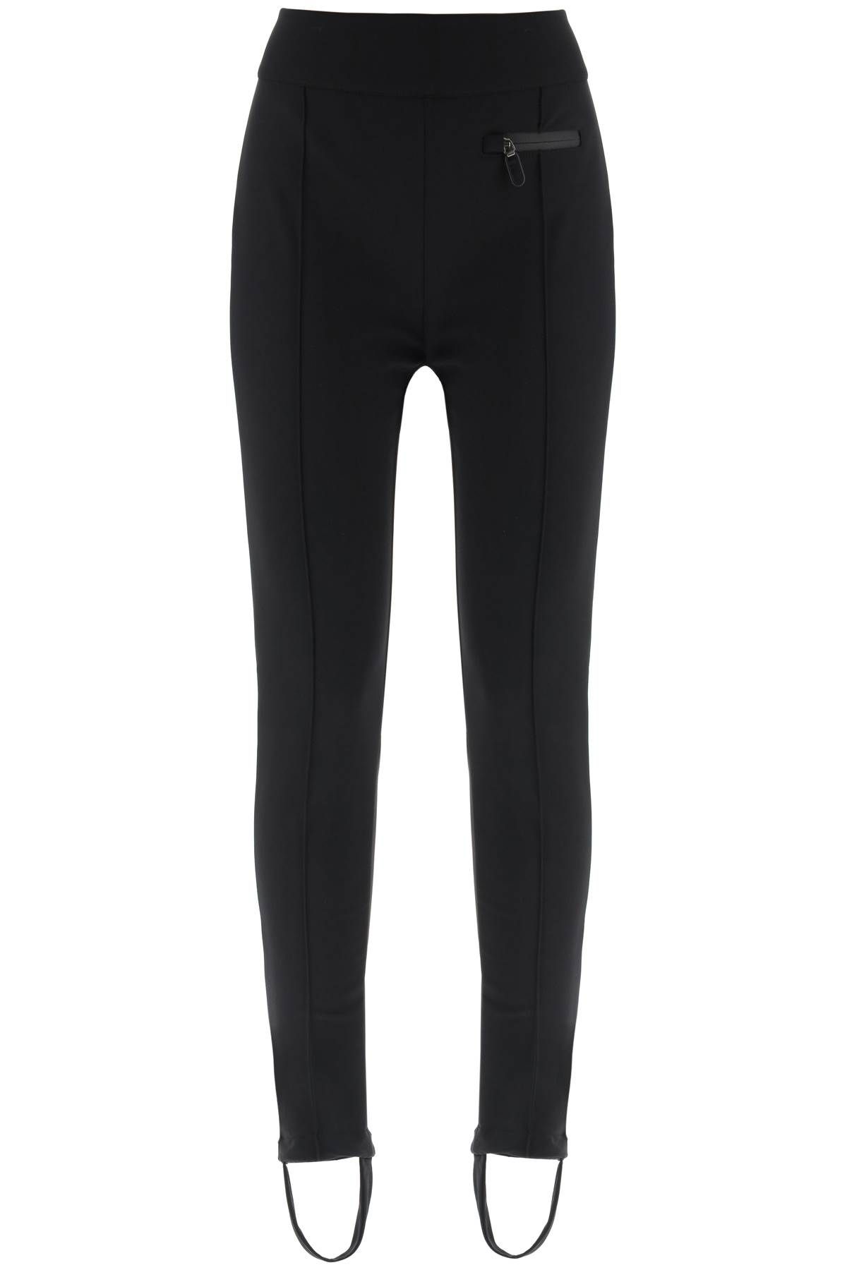 High-waisted ski leggings by Fendi made of stretch nylon with elastic stirrups at the leg bottom. They feature a side zippered welt pocket enriched by the FF O'Lock slider, and an embossed-logo patch at back of the waist. Finished with tonal pintuck down the leg and side invisible zip fastening. The model is 177 cm tall and wears a size IT 42.