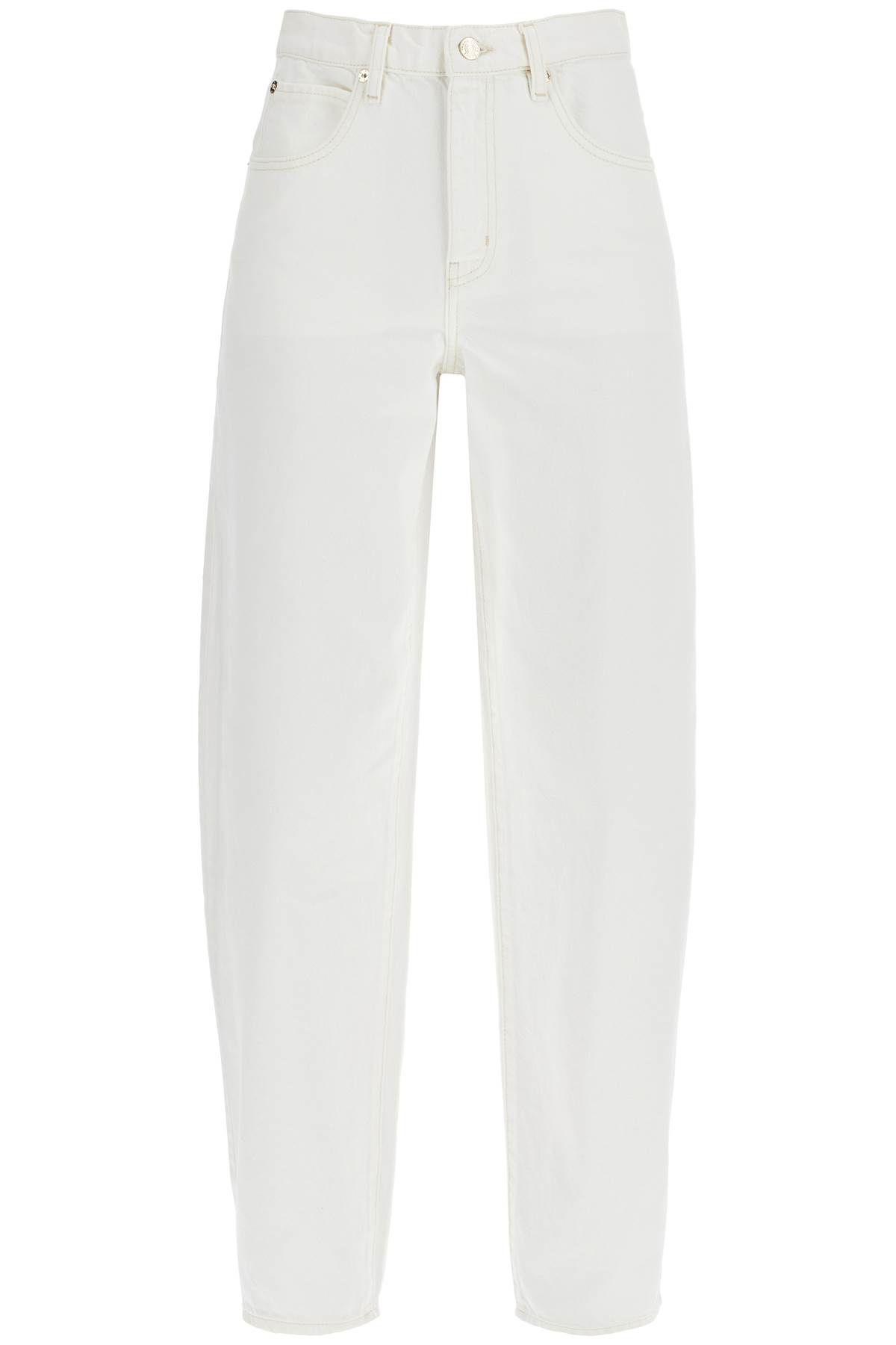 These Frame five-pocket jeans are characterized by a barrel silhouette and made of cotton denim with belt loops and a hidden zip and button closure. The model is 177 cm tall and wears size 26.