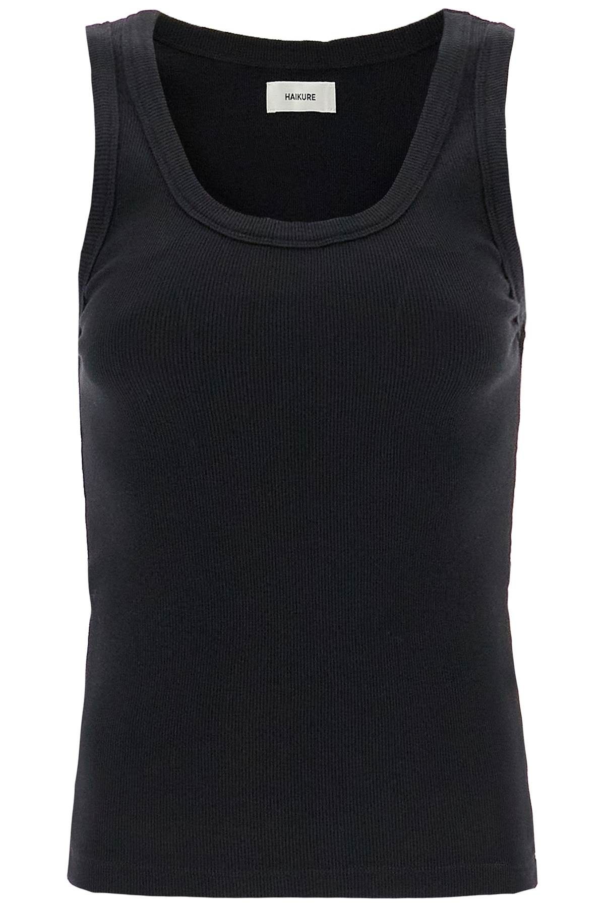 The Haikure top is made of ribbed pure cotton jersey with a fitted silhouette and deep round neckline. The model is 177 cm tall and wears a size S.