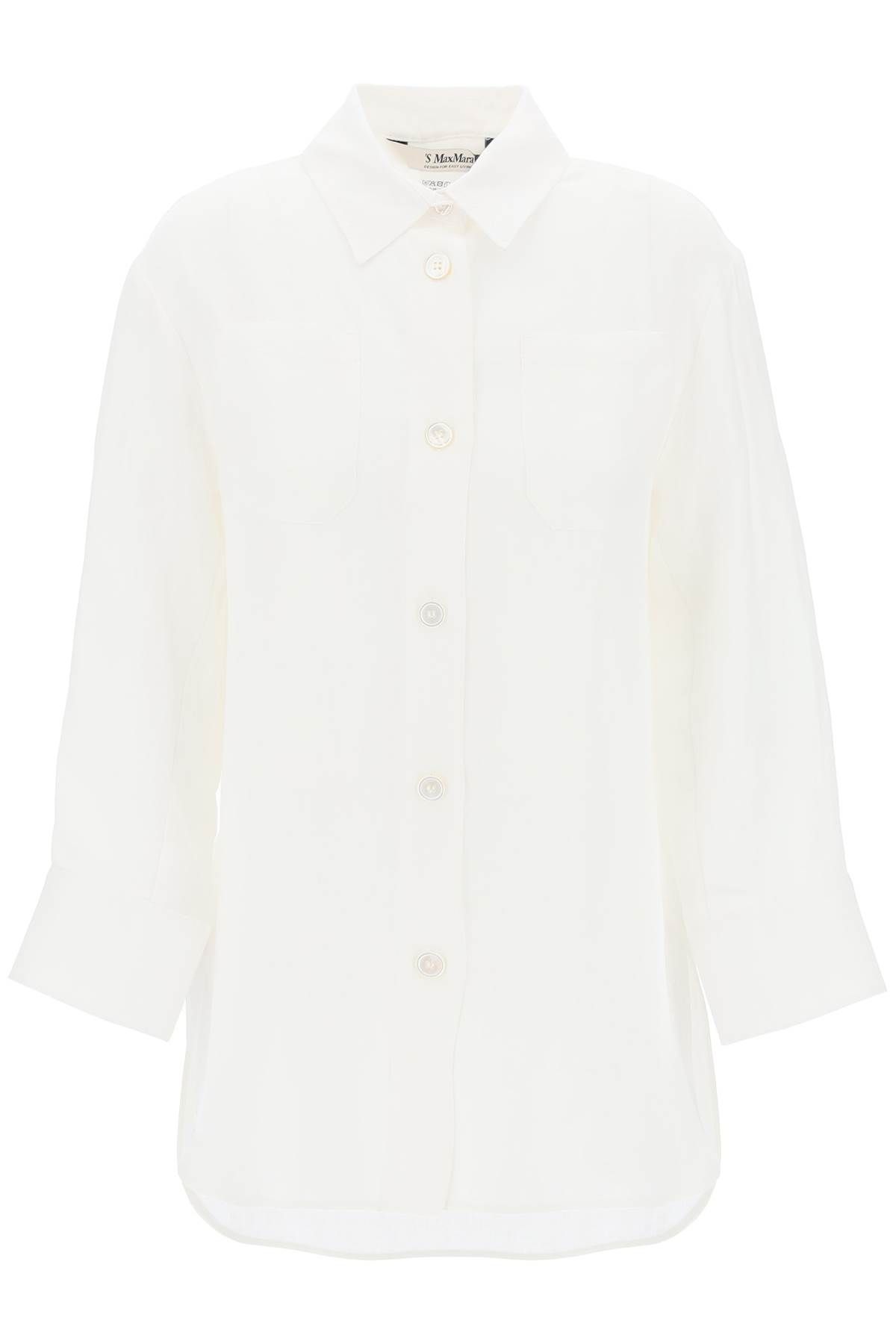 'S Max Mara's shirt with a soft line and three-quarter sleeves, made of lightweight flamed linen fabric and featuring a classic collar and French button placket. Completed by patch pockets on the chest, buttoned cuffs and a shaped bottom with side slits. The model is 177 cm tall and wears an IT size 38.