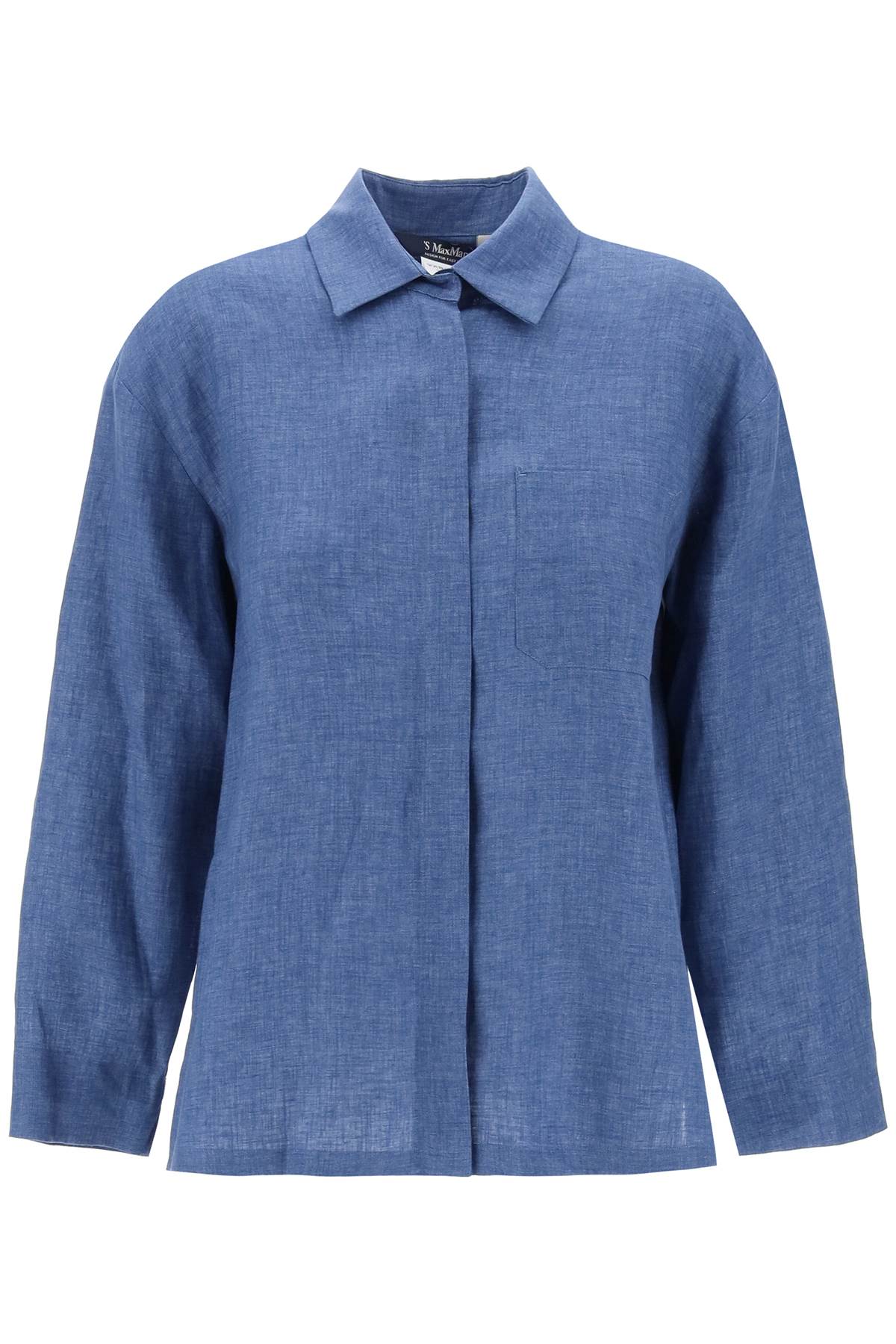 The Kasia shirt from the 'S Max Mara collection is made of pure linen fabric for a soft and slightly flared silhouette. The classic design features a pointed collar, chest pocket and hidden front button closure, finished with slits at the bottom and cuffs and a back square with a small vent. The model is 177 cm tall and wears size IT 40.