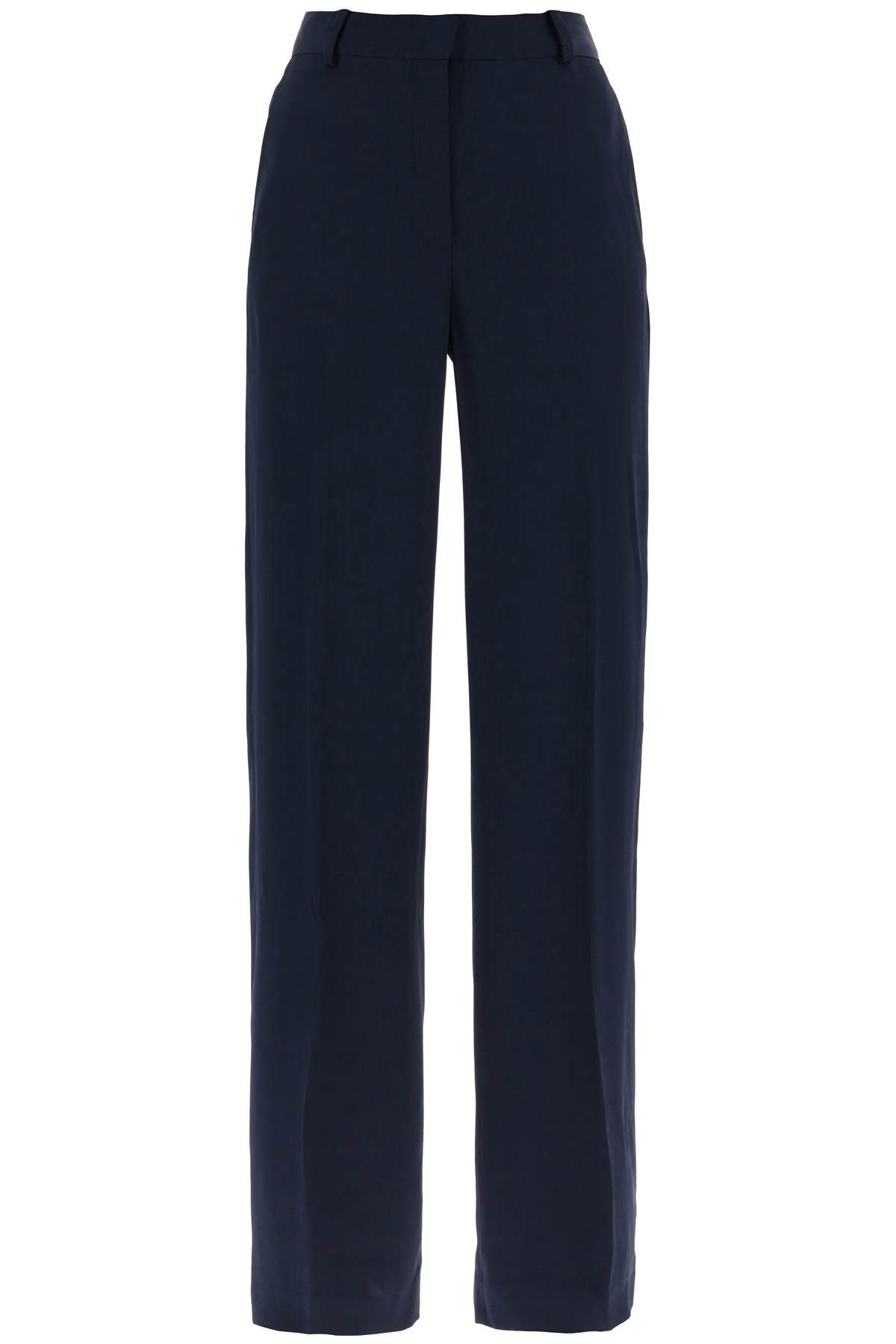 Stella McCartney's palazzo pants, with a flattering pleated design, are made from sustainable fluid viscose crepe. They feature a hidden zip closure, button and hooks, as well as French side pockets, belt loops, and a back welt pocket with a button. The model is 177 cm tall and wears an IT size 40.