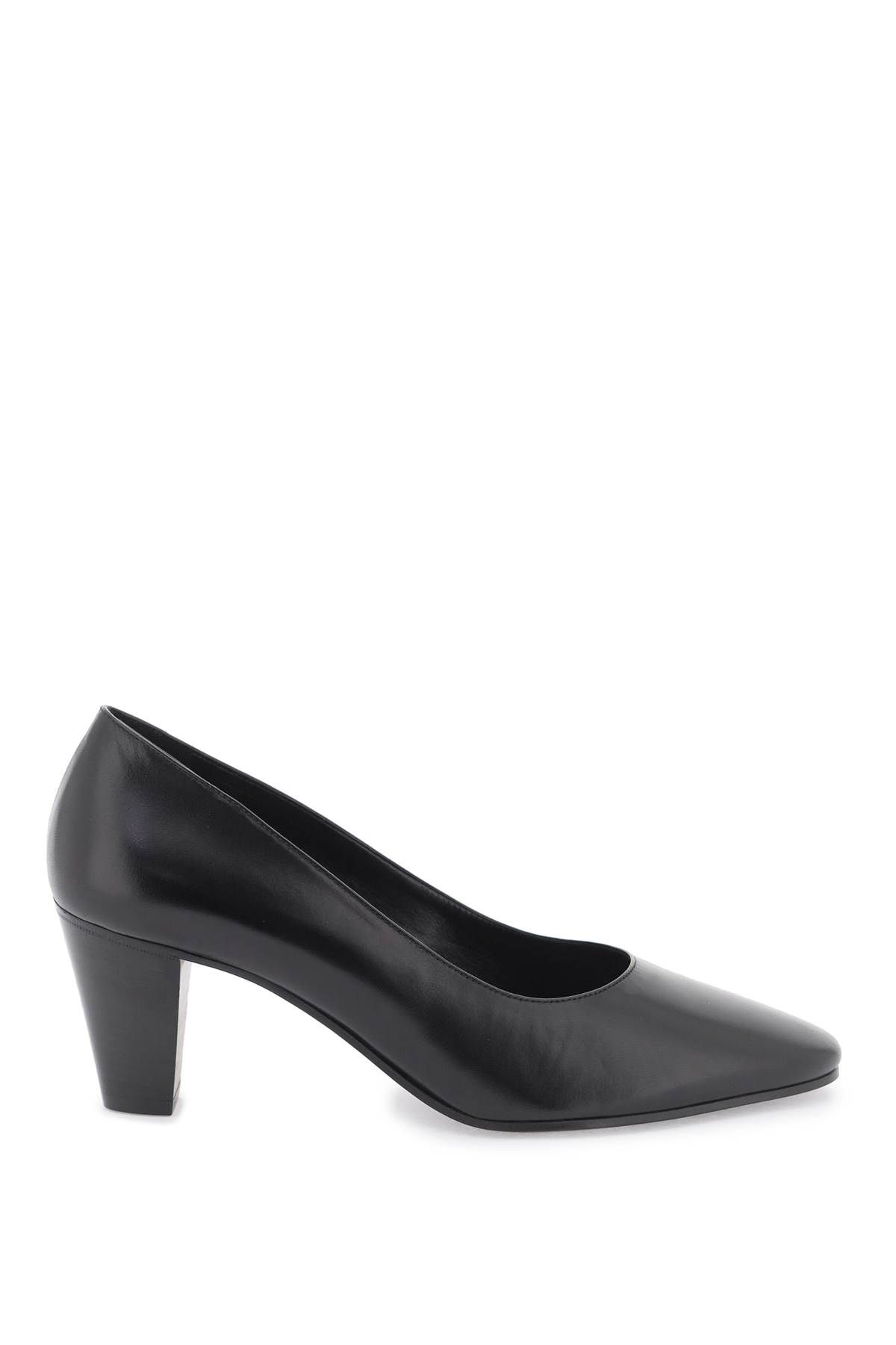 The Row's Charlotte Décolleté shoes are made of delicately polished leather with a rounded neckline, elongated almond toe, and layered wooden heel. The sole is crafted from leather with a rubber inlay for added durability.
