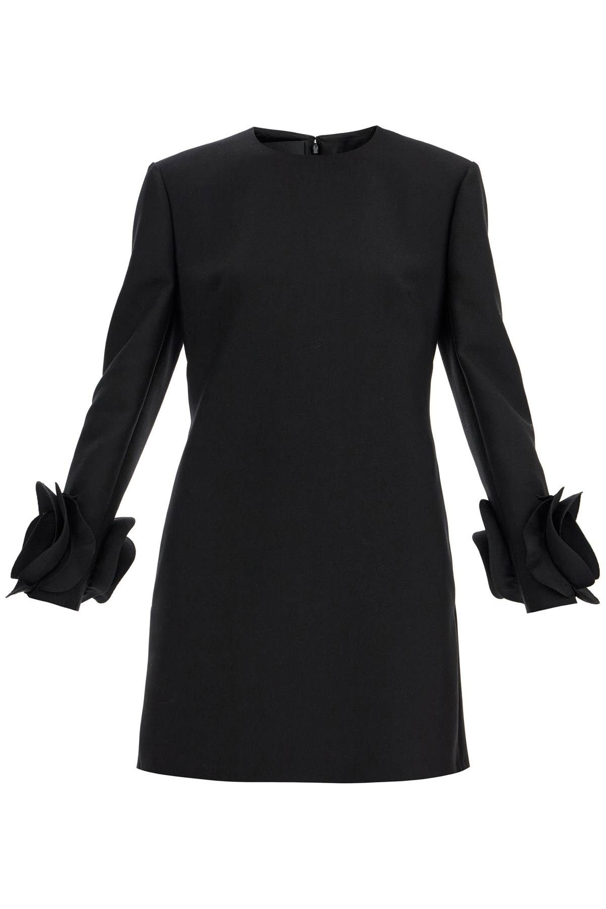 This short Valentino dress is made of Double Compact Drill virgin wool with rose appliques on the cuffs. It features a fitted silhouette with a slightly flared hem, round neckline, padded shoulders, and pockets inserted in the hips. Invisible zip closure at the back, lined interior. The model is 177 cm tall and wears size IT 40.