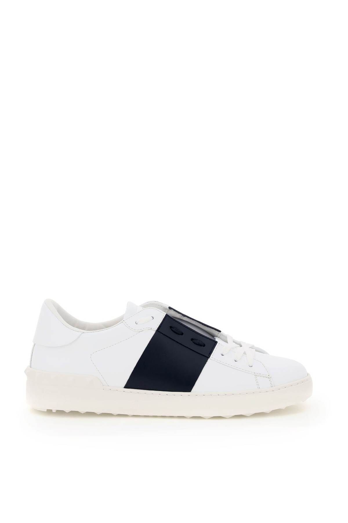 Valentino Garavani Open sneakers crafted in smooth leather with contrasting band and gold-tone logo print on the tongue. Leather lining with removable insole, rubber sole with the iconic studs embossed on the heel. Extra laces included.