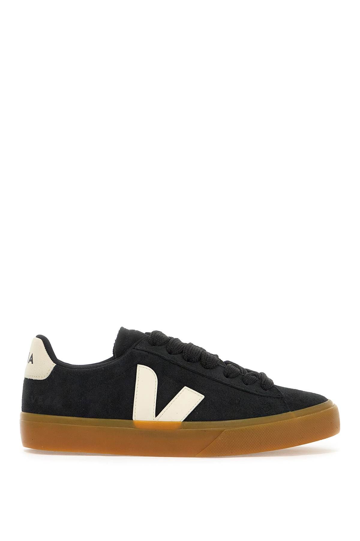 The Campo Bold sneaker by Veja is made of Chromefree leather and features contrasting V-shaped rubber logos on the sides. The spoiler has a printed logo in contrast, while the tongue and side have an embossed logo. The interior is made of eco-friendly fabric with a removable insole, and the sole is made of natural rubber sourced from the Amazon rainforest.